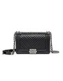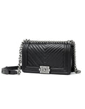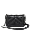 Genuine sheepskin leather chevron quilted design flap handbag