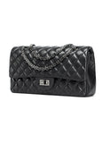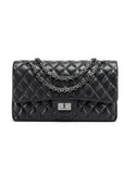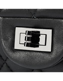 Genuine sheepskin leather quilted flap handbag