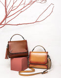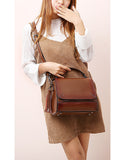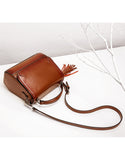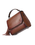 Genuine leather shoulder bag with front flap and tassle (more colours)