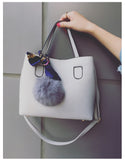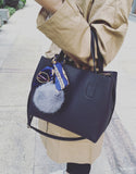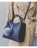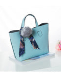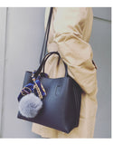 PU leather tote bag with pom pom, mini scarf and a detachable bag (more colours)