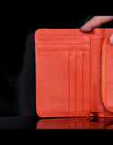 - 1 zipper coin compartment, 1 bill sleeve, 2 slip pockets, 7 card slots, 2 ID slots, 1 photo slot