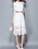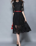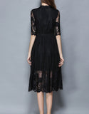 Mid-length sleeve laced A-line mid-length dress (More colours)