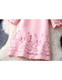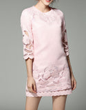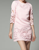 Mid-length sleeve with cut-out embroidery and lace short dress (More colours)