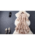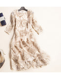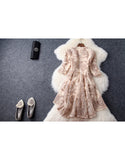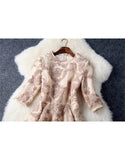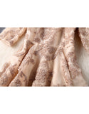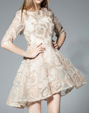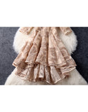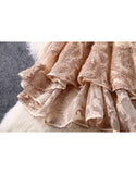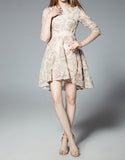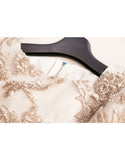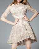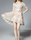 - Dress is flared with the back of the dress slightly longer than the front of the dress