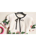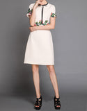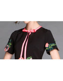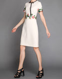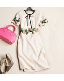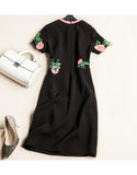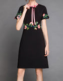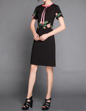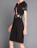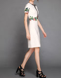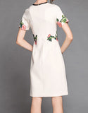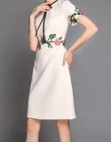 Short sleeve embroidered tailored mid-length dress (More colours)