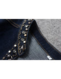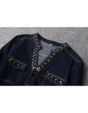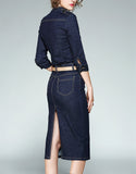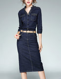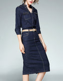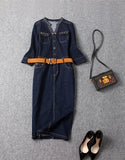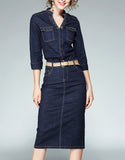 Embellished mid-length sleeve tailored denim mid-length dress