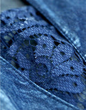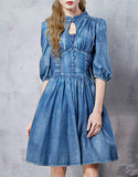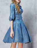 Front laced mid-length sleeve short denim dress
