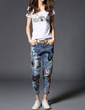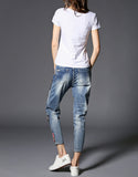 - Product on sale is jeans. The t-shirt shown in the photos is for illustration only