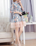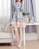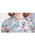 Mid-length sleeve short cheongsum with sewn-on sequins