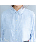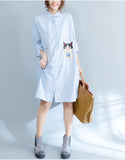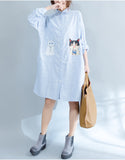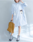Oversized long sleeved striped shirt dress with kitty picture