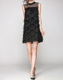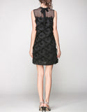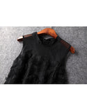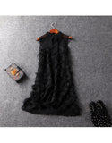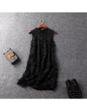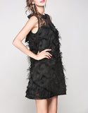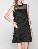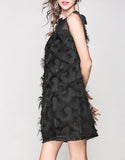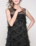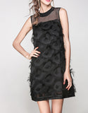 Sleeveless mid-length dress with feathered details