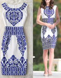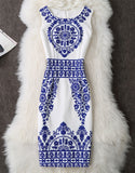 Sleeveless patterned mid-length pencil dress