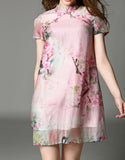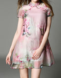 Short-sleeve short flared cheongsum