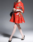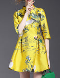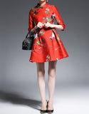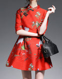 Mid-length sleeve embroidered short flared cheongsum (More colours)