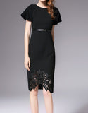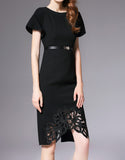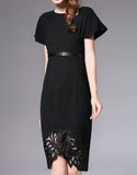 Short sleeve tailored front laced long dress