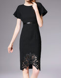 Mid-length sleeve embroidered long dress