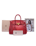 Genuine leather crocodile prints tote bag with lock and clochette - SMALL (more colours)