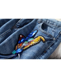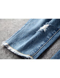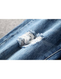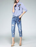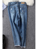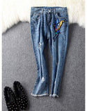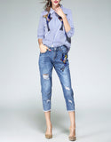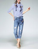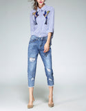 Distressed jeans with birdie design in sequins, beads and embroidery