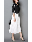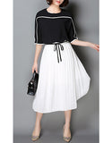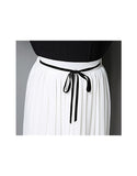- Pleated skirt comes with inner lining, elastic waist band and tie-string at the waist